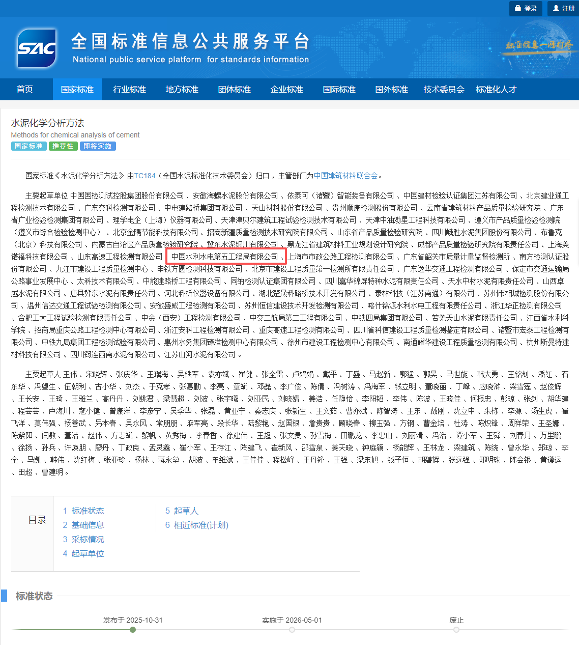 水泥作為全球基建核心材料,其品質直接關乎工程安全與耐久性,此次發布的《水泥化學分析方法》,是規范水泥化學指標定量檢測、保障產品性能達標、筑牢行業質量底線的關鍵技術標準。公司中心試驗室自成立以來,深耕水泥產品質量檢測領域,憑借專業的技術團隊與豐富的實踐經驗,為工程質量控制提供了堅實支撐。在標準編制過程中,公司檢測專家全程參與起草、論證、審核等關鍵環節,歷經近兩年的嚴謹打磨,結合行業實踐與技術創新,為標準的科學性、實用性與前瞻性注入了重要力量。