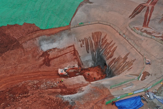 石盤連通工程閘室段位于久隆水庫1號副壩左岸,是“新建取水塔、實現兩庫連通”的核心控制部位,開挖深度達18米,地質條件復雜,屬于“超過一定規模的危險性較大分部分項工程”,施工精度與安全管控要求極高。
