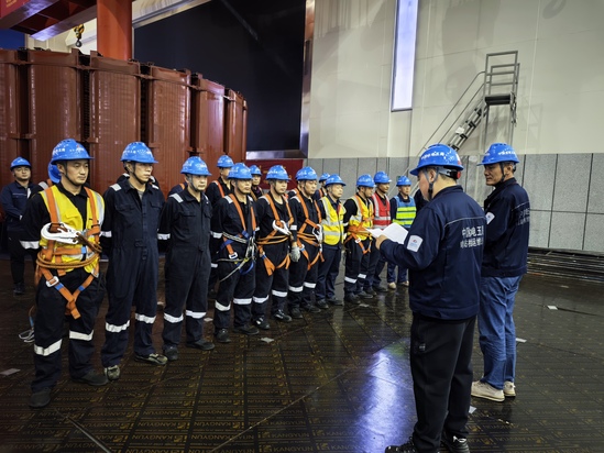 轉子回裝作業前,檢運公司溧陽項目部制定了周密的專項施工方案和安全保障措施,對橋機、吊具等起重設備進行了全面檢查與試驗,并對全體作業人員進行了詳細的技術交底與安全培訓。作業過程中,現場指揮、起重、安全等各崗位人員分工明確、協同配合,全程嚴格按照既定方案執行。在全體人員的密切注視與精準操作下,龐大的轉子平穩起吊,從安裝間緩緩穿越過1至5號機組,最終與發電機主軸精準對位并成功聯接,整個過程一氣呵成,各項技術指標均符合設計規范與優良標準。