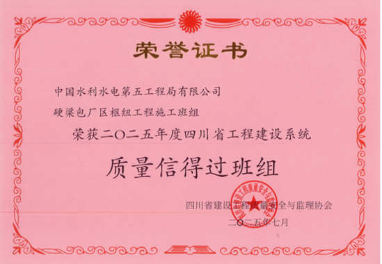 在2023年硬梁包硬梁包廠區樞紐工程項目部榮獲四川省工程建設系統“質量信得過班組”稱號后,2025年再次榮獲該榮譽稱號。