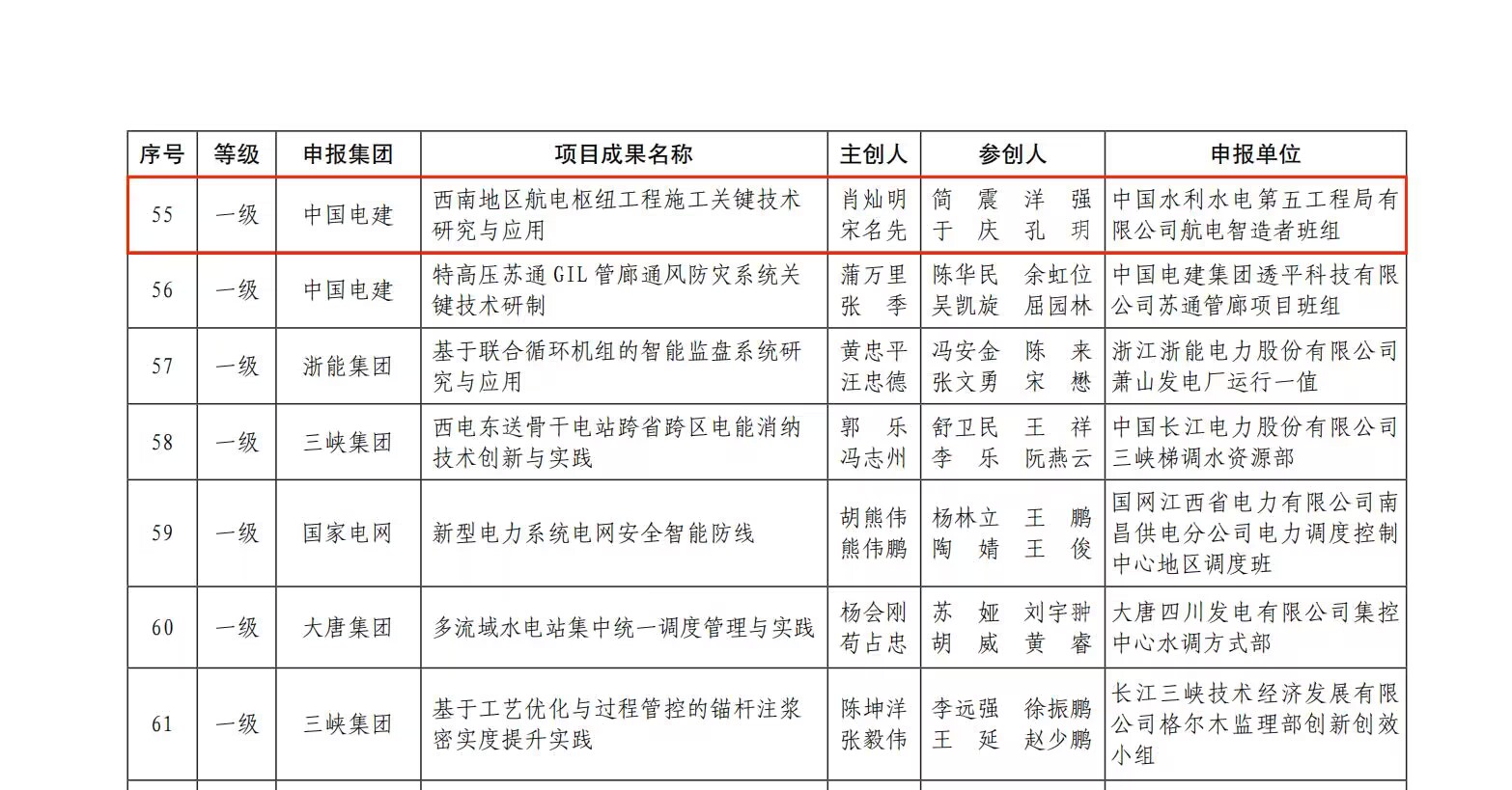 近日,中國能源化學地質工會全國委員會和《企業管理》雜志社公布第五屆(2025)電力企業班組崗位創新創效優秀項目成果名單,公司“航電智造者”班組申報的《西南地區航電樞紐工程施工關鍵技術研究與應用》課題在眾多成果中脫穎而出,榮獲一等獎。