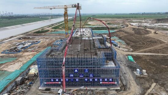 9月20日上午,隨著副廠房最后一方混凝土澆筑順利完工,標志著引江濟淮二期工程合肥水源項目小廟提水泵站主副廠房全面封頂,工程建設全面轉入機電設備安裝新階段。合肥水源工程屬于國家150項重大水利工程之一,于2023年10月16日正式開工。水電五局承建其出口涵閘、箱涵、泵站機電安裝、管理房及泵站上部土建結構及裝修等施工。建成后將在合肥境內實現引江濟淮與淠史杭灌區兩大工程的歷史性牽手,形成“江水、淮水、淠水、湖水”互通互濟的水資源優化配置格局。