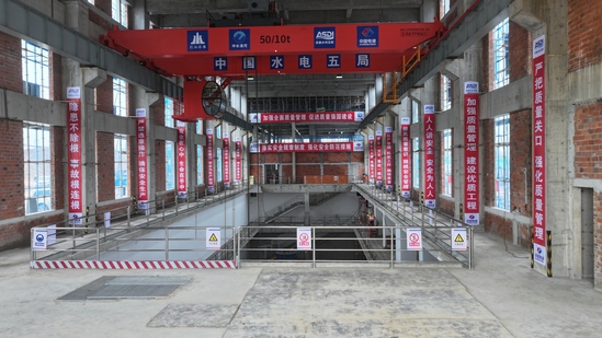 在工程推進中,橋機安裝曾是影響工期的關鍵節點。水電五局建設者打破“全封頂后安裝”的傳統模式,創新采用“半幅施工、見縫插針”的施工方案,在左幅封頂后,右幅仍在進行結構施工,便利用這一間隙,在有限空間內將這臺后續承擔所有機電設備吊裝任務的“唯一鋼鐵巨臂”提前精準就位,為后續機電安裝搶出寶貴時間,盡顯“五局速度”與攻堅智慧。
