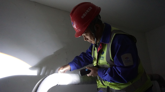 攻堅的腳步不停,守護的責任更重。當戈壁的夜風裹著寒意漫過工地,氣溫跌至零下,另一群“守護者”正用腳步丈量安全的邊界。在電站加壓泵站施工區域,質檢員王俊紅正拿著手電筒巡檢設備。“中秋期間更要繃緊安全這根弦,每一個螺栓、每一處焊接都得仔細檢查。”他的腳步聲在空曠的工地里格外清晰,手電筒的光束掃過設備支架,照亮了他凍得發紅的雙手。