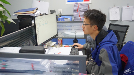 寒夜里的溫暖不止于茶話會的熱鬧,更藏在年輕建設者眼底的光里。當老一輩的堅守化作傳承,青春力量正在戈壁上悄然綻放。項目營地辦公室內,28歲的范立文對著電腦屏幕反復推演安裝方案,“難題總要有人解,憑什么不能是我!”這句銳氣十足的話,是他面對技術瓶頸時的口頭禪。為優化供水設備管線布局,他已連續三天加班到深夜,中秋節的晚餐就拿月餅和熱牛奶來解決。