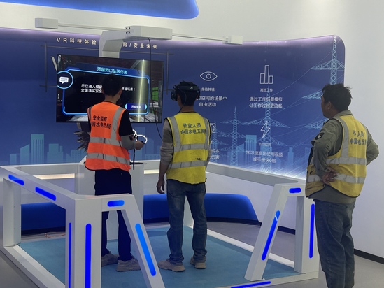 走進安全體驗館,員工戴上VR設備,瞬間“置身”于塌方、觸電、高處墜落等事故現場,切身感受違規操作帶來的嚴重后果;在高空墜落體驗區,通過短暫失重感讓人心有余悸,從而真正敬畏規程。每一次體驗都是一次震撼教育,許多工人坦言:“以前覺得戴安全帽是應付檢查,現在明白,那是保命的底線。”體驗結束后,系統會自動生成操作失誤分析報告,講解員結合報告進行針對性指導,實現了“體驗—反思—改進”的閉環學習。“我們利用安全體驗館開展沉浸式培訓,將抽象知識轉化為具象體驗,有效解決了工友‘聽不懂、記不住’問題顯著提升了培訓實效。”項目安全負責人介紹道。除此以外,項目部還定期組織應急演練,模擬火災、涌水等險情,提升全員應急處置能力。安全不再是墻上標語,而是刻進了每個人的行為習慣里。截止目前,黃龍項目已經利用安全體驗館開展沉浸式安全培訓28場次,應急演練10余次,累計參與人員達1200余人次,實現新進場工人培訓覆蓋率100%。