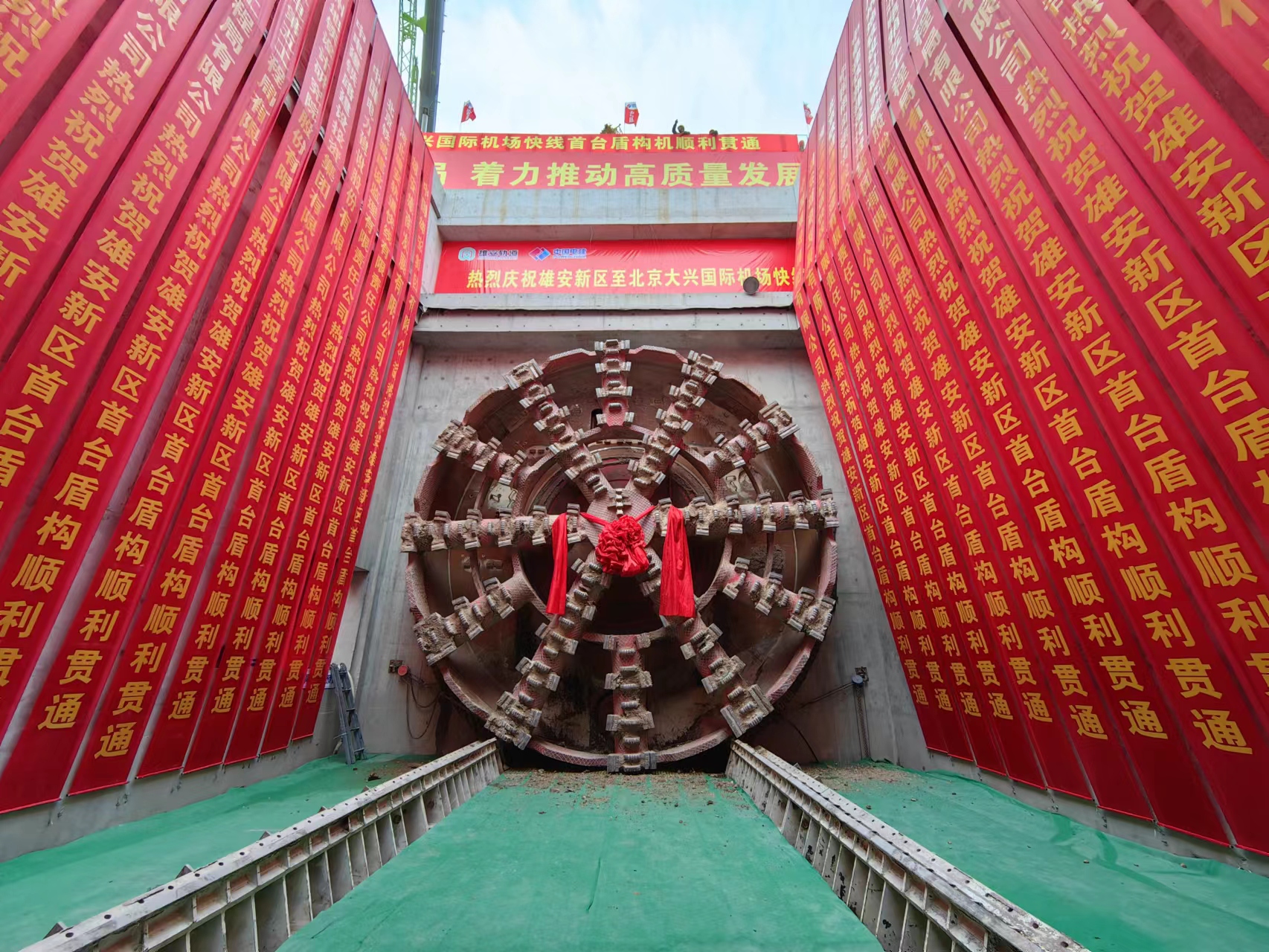 2023年4月,水電五局京雄快線項目“雄安三號”盾構機順利出洞,成為雄安新區首臺完成接收的盾構機,也標志著雄安新區首條盾構隧道貫通。這臺直徑9.13米的土壓平衡盾構機,在這片希望的土地上創下平均月進尺400米、最高539.2米的佳績,成功穿越白溝河等多處風險源。