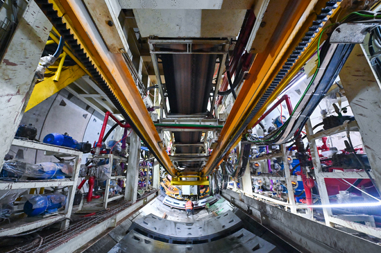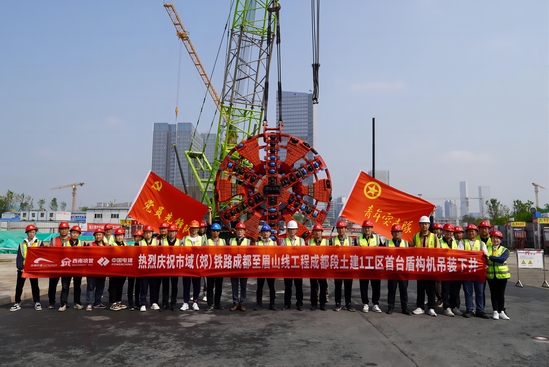 水電五局承建的市域(郊)鐵路成眉線工程成都段土建1工區起于紅蓮站,止于官塘站~煎茶站明挖區間(與橋梁分界里程),正線線路總長4.773公里,包括3站、3線、3區間,主要穿越中風化泥巖、中風化砂巖、中風化礫巖等,屬于低瓦斯微瓦斯區間。區間依次下穿招商南mall地下車行聯絡道、嘉州路下穿隧道、東方希望天府中心等近20處風險源,地質條件復雜、沉降控制難度大、施工組織難。項目投入的5臺“江源號”盾構機化目前已累計向前挺進9217.5米,成功穿越9處風險源,剩余征程僅1341米。