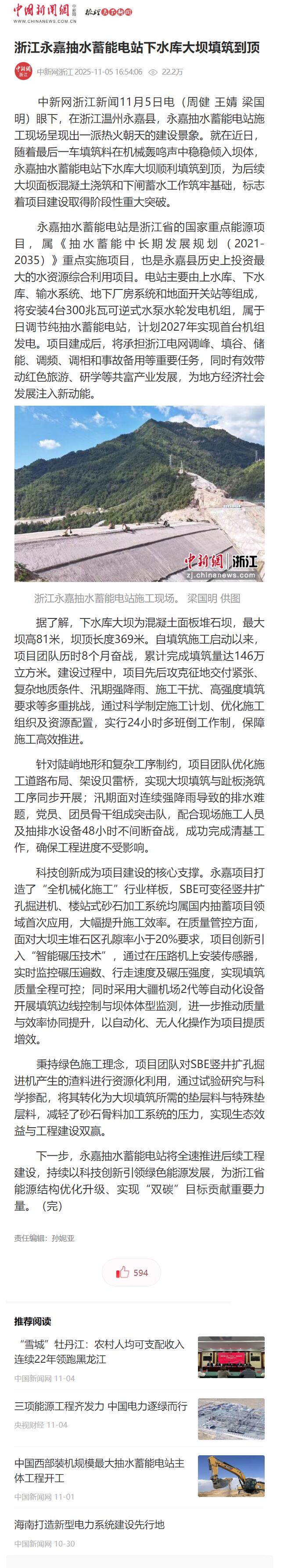 下一步,永嘉抽水蓄能電站將全速推進后續工程建設,持續以科技創新引領綠色能源發展,為浙江省能源結構優化升級、實現“雙碳”目標貢獻重要力量。(完