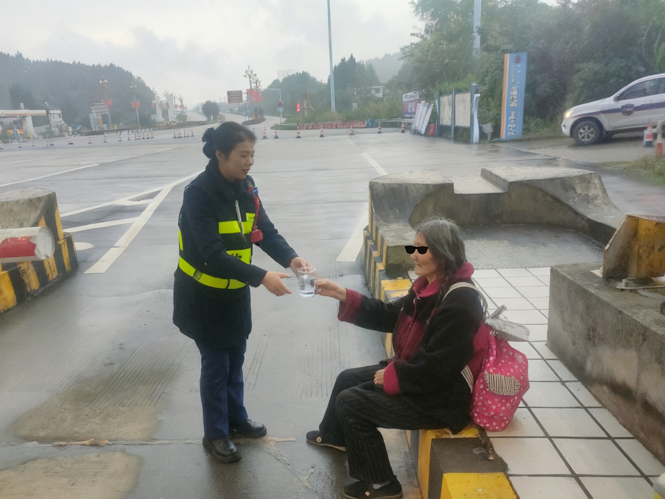 值班班長抵達現場后,見老人面色疲憊,當即從崗亭端來熱水。老人飲用后情緒逐漸平穩,緩緩道出緣由:其家住附近村莊,原本計劃前往城區探親,途中迷失方向,誤打誤撞上了高速公路。了解情況后,值班班長耐心安撫老人情緒,安排工作人員沿老人行走路線排查遺失物品,同時同步聯系站內路巡隊員協調后續護送事宜。