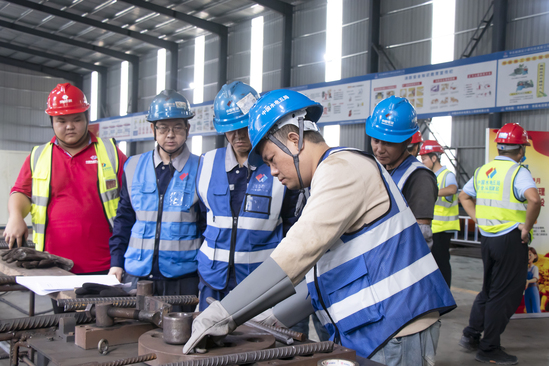 活動緊扣工程質量的關鍵環節,設置了鋼筋直螺紋套筒連接、銅止水焊接、鋼筋單面焊及雙面焊等具有代表性的實操比賽項目。各參賽隊伍選手全神貫注,嚴格按照操作規程和工藝標準展開激烈角逐,充分展現了精益求精的工匠精神和嫻熟精湛的專業技能。為確保比賽公平公正,評委由項目公司、監理、第三方中心試驗室、總包部及水電五局代表共同組成。各位評委從操作規范性、工藝流程、質量穩定性、完成效率及安全文明施工等多個維度,對每位選手的比賽過程和最終成果進行綜合評定、嚴格打分。