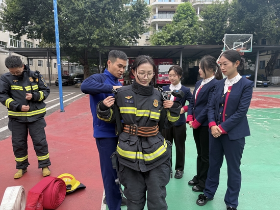 在裝備體驗環節,團員(yuan)青(qing)年們在教(jiao)官帶(dai)領下(xia)參觀搶險救援車、空氣呼吸器等裝備,觀看消(xiao)防(fang)服穿(chuan)戴、滅(mie)火器操作演(yan)示。部(bu)分團員(yuan)青(qing)年親身體驗器材操作與裝備穿(chuan)戴,直(zhi)觀感受(shou)消(xiao)防(fang)工作的專(zhuan)業性與嚴(yan)謹性。