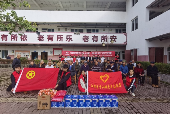 10月27日,江津至習水項目團支部聯合重慶市江津區中山鎮人民政府、江津區中山鎮衛生院走進江津區中山鎮中心養老院,9名團青志愿者分為醫療服務組和互動陪伴組,為養老院的老人們送去關懷與溫暖。