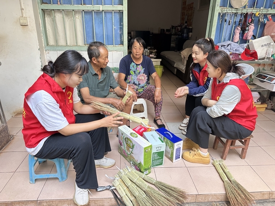志愿者們兵分兩路,一組志愿者化身“安全衛士”,運用專業知識,仔細檢查老人家中電路線路、燃氣閥門及門窗安全狀況,并同時用通俗易懂的語言向老人耐心講解日常用電、用氣安全知識;另一組志愿者則擔任“整潔管家”,手持掃帚、抹布,認真清掃院落落葉,整理屋內物品,擦拭家具門窗,努力為老人打造一個更加安全、整潔、舒適的生活空間。此次慰問活動,不僅是一次單向的付出,更成為一場雙向的感動與珍貴的代際交流。活動中,青年志愿者們意外收獲了一份特別的“回禮”——一項傳統手工技藝的傳承。