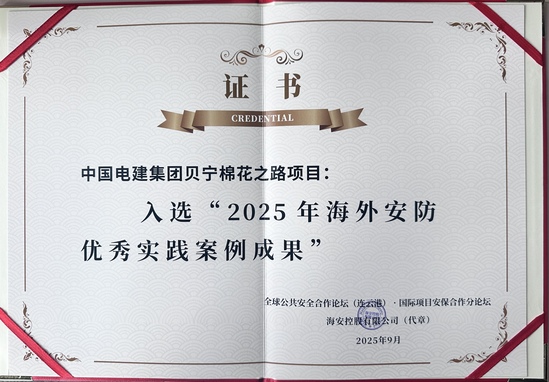 近日,貝寧棉花之路項目在全球公共安全合作論壇(連去港)2025年大會上獲評“2025年海外安防優秀實踐案例成果”。