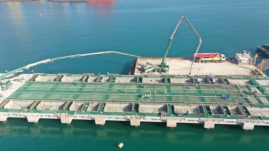 10月28日,隨著混凝土緩緩入模,沙特國王港項目P4包關鍵線路二號指碼頭首倉面層混凝土開始澆筑。