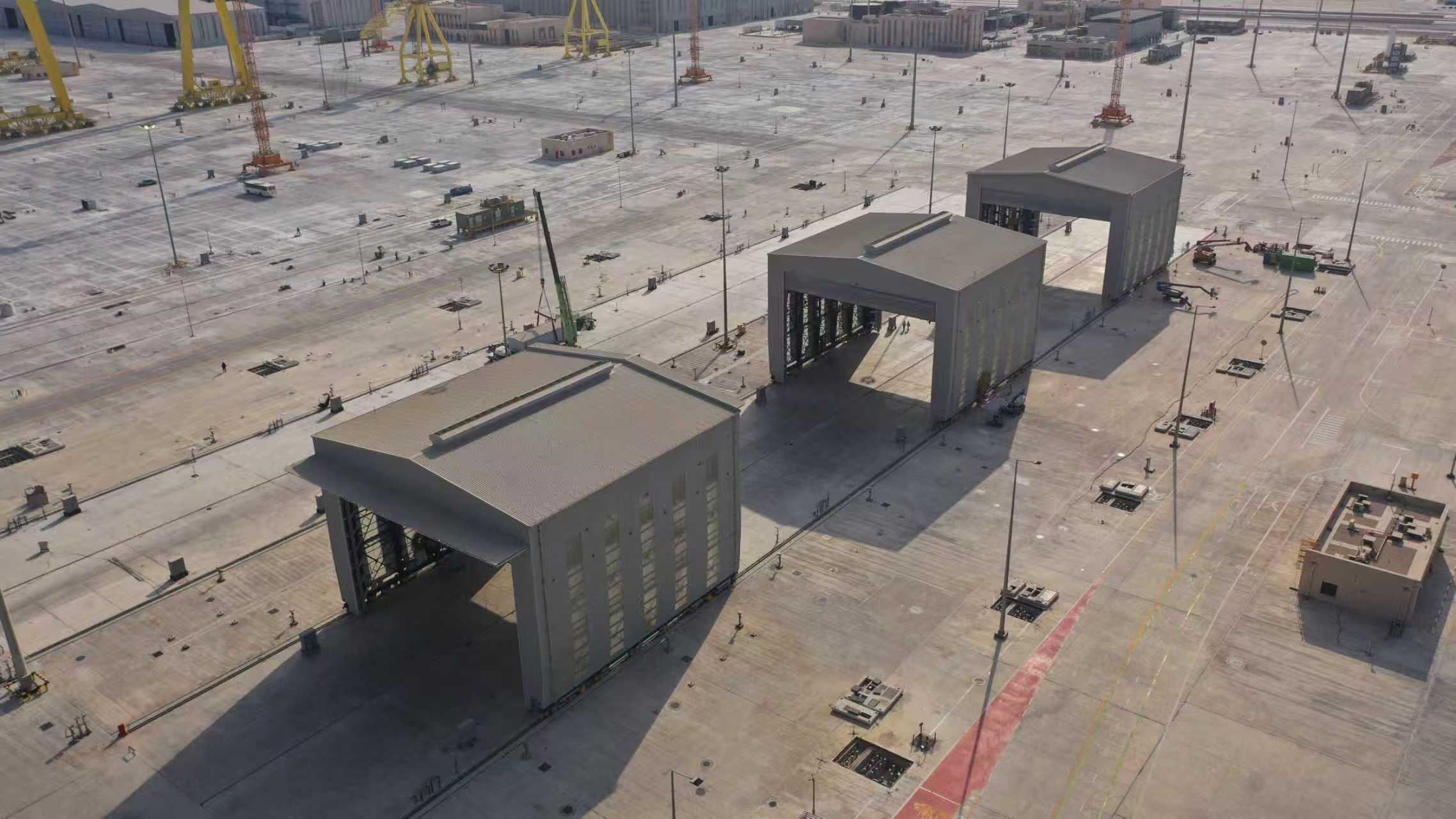 作為項目的重要臨建設施,B205移動廠房為露天施工提供了可靠的遮蔽條件,有效保障了船舶設備的維修、檢測及安裝等作業順利開展,為提升作業效率發揮了重要作用。